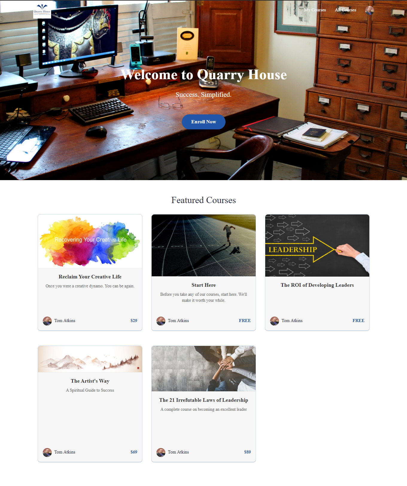> Tom Atkins posted: ” It’s official. I have launched my on-line classes > site. One of two new lessons each week. If you are interested, please make > sure you watch the “Start Here” lesson first. (Trust me on this.) > https://quarry-house1.teachable.com/ Tom ” >